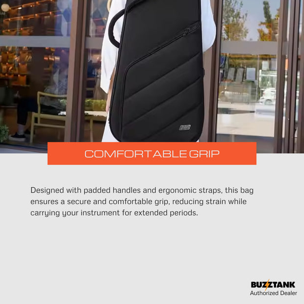 The **Jinchuan B-2121 30mm Padded Oxford Cloth Electric Guitar Bag, Black (Model: GU-B2121-EG-BL/GR)** is a premium-quality gig bag designed to offer superior protection for electric guitars. Crafted with durable 30mm padded Oxford cloth, this bag ensures that your instrument withstands everyday wear and tear while on the move. Its sleek black exterior is both stylish and practical, making it an excellent choice for musicians who prioritize both form and function.