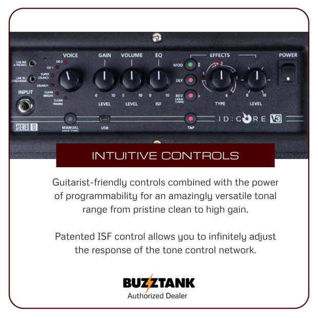 Infinite Shape Feature (ISF): Blackstar's patented ISF allows you to infinitely adjust the amp’s sound, offering limitless tonal possibilities. Whether you prefer classic British tones or modern American sounds, the ISF lets you shape your tone to suit your style.