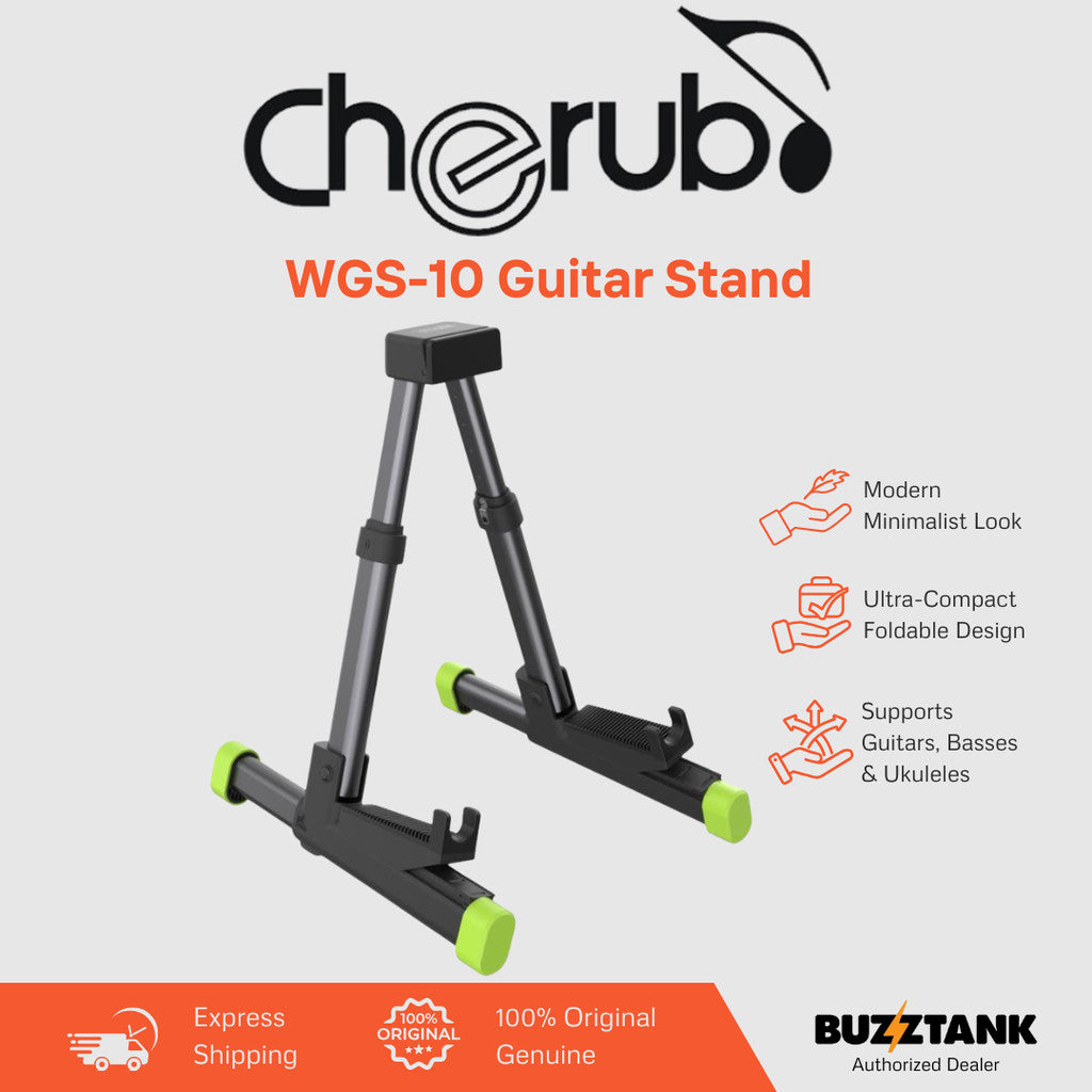 The Cherub WGS-10 is a lightweight, adjustable, and foldable guitar stand designed for musicians who value portability without compromising stability. Built from durable aluminum with a sleek sandblasted finish, this stand combines strength, style, and smart engineering in one compact package.