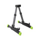 Its adjustable backrest and extendable rear legs easily adapt to different instrument shapes and sizes, making it perfect for acoustic guitars, electric guitars, basses, and even ukuleles. The spring-loaded backrest provides a secure fit, while soft silicone padding at all contact points ensures your instrument stays scratch-free and firmly in place.
