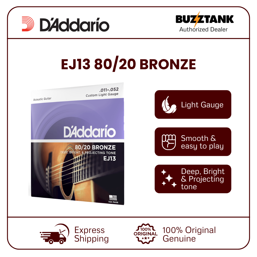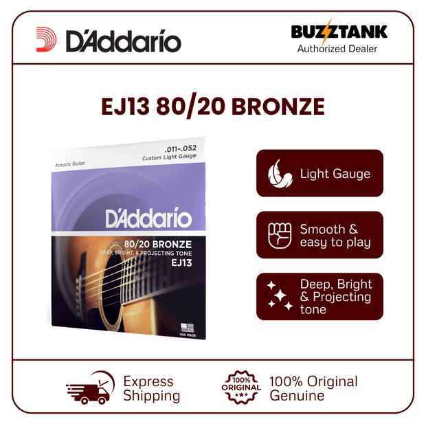The 80/20 Bronze alloy (used in these strings) is a popular choice for recording due to its projection and tone clarity. All D'Addario strings are wound on a high-carbon steel core, which ensures long-lasting durability and consistent, bright sound.
