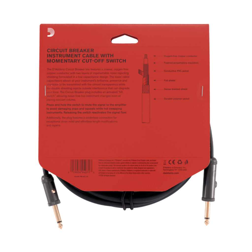 - **Circuit Breaker Technology**: The cable features a unique Circuit Breaker switch that allows for the muting of the cable and instant on-stage signal cut-off. This is particularly useful to prevent the unwanted noise and feedback that can occur during setup or when swapping instruments.