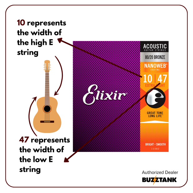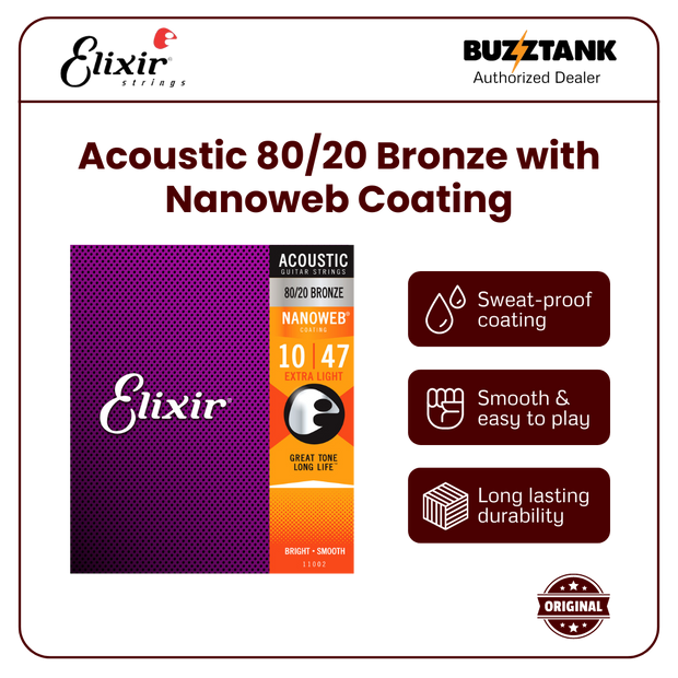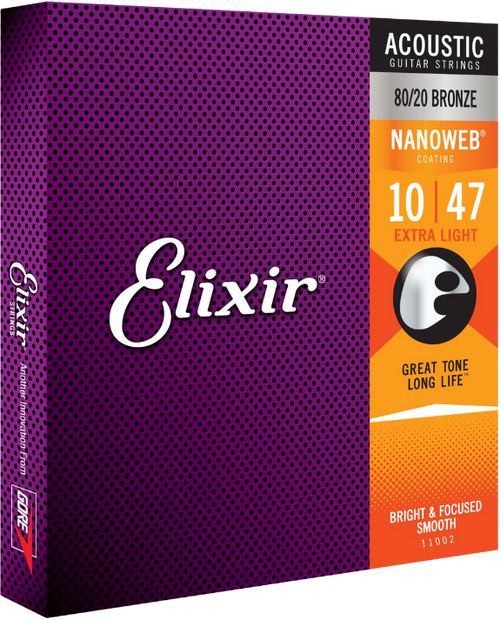 Elixir Nanoweb Acoustic Guitar Strings 80 20 Bronze Extra 10 Light 10-47