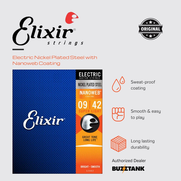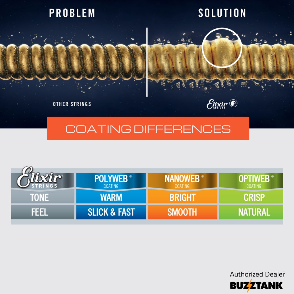 Elixir Nanoweb Electric Guitar Strings Baritone 7 String 8 String 12002 12052 12102 12027 12077 12302 12007 12057 12062