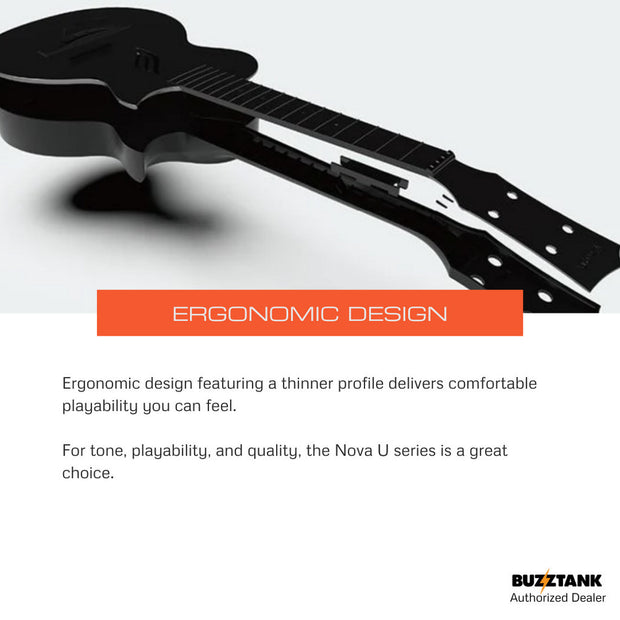 The NOVA U Carbon Fiber Concert Ukulele made waves on social media for its innovative design and bright, resonant tone. Crafted from carbon fiber, it’s heat and water-resistant, making it ideal for travel or outdoor play. The thin, ergonomic body and arched back offer comfortable playability, while the unique soundhole design enhances projection. Lightweight and durable, the Nova U is easy to carry and maintain. Please note it is not compatible with wound or metallic strings.