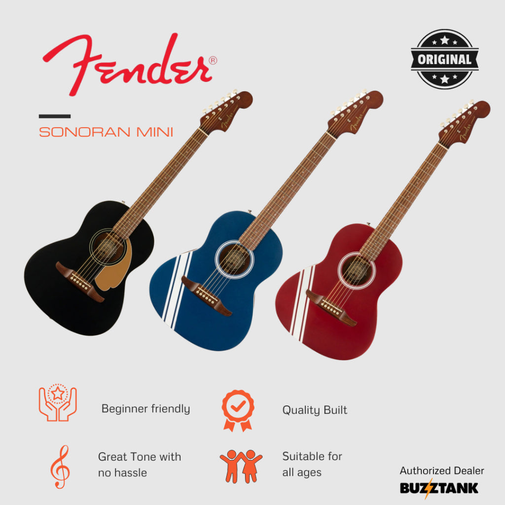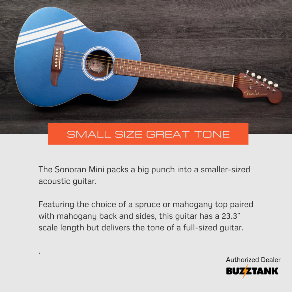 The Fender Sonoran Mini is a compact acoustic guitar that delivers big sound in a smaller, travel-friendly package. Perfect for younger players or anyone seeking a high-quality, portable guitar, the Sonoran Mini is part of Fender’s California Series and is designed to provide the tone of a full-sized instrument.