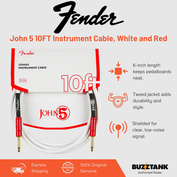 πΈ Fender John 5 10FT Instrument Cable β White & Red
