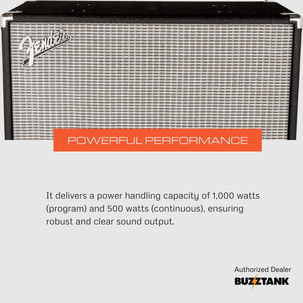 - **Classic Fender styling**: Featuring a black textured vinyl covering and silver grille cloth for a timeless aesthetic.