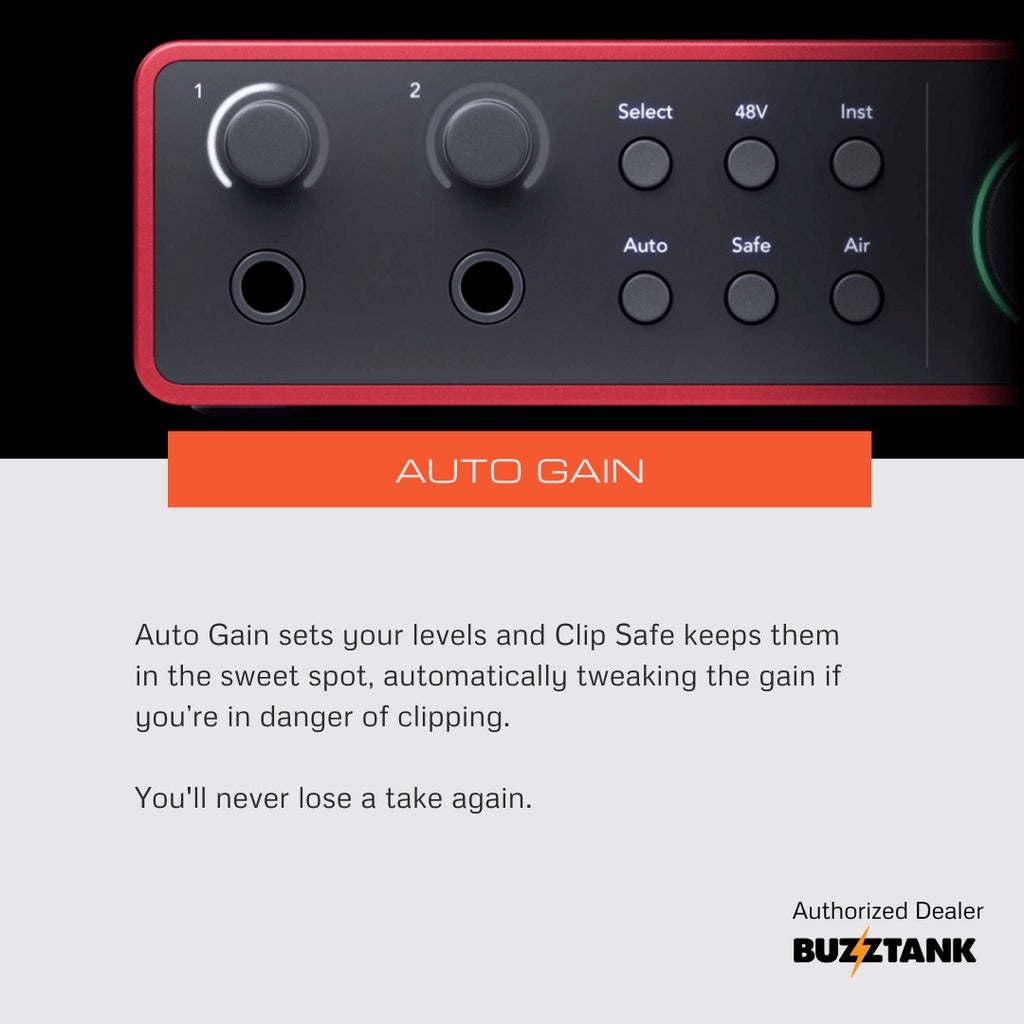 The Scarlett 2i2 4th Gen is a 2-in/2-out USB audio interface designed for versatile creators and performers. With its additional features and expanded connectivity, it’s a step up from the Solo, accommodating more complex setups while delivering the same stellar sound quality.