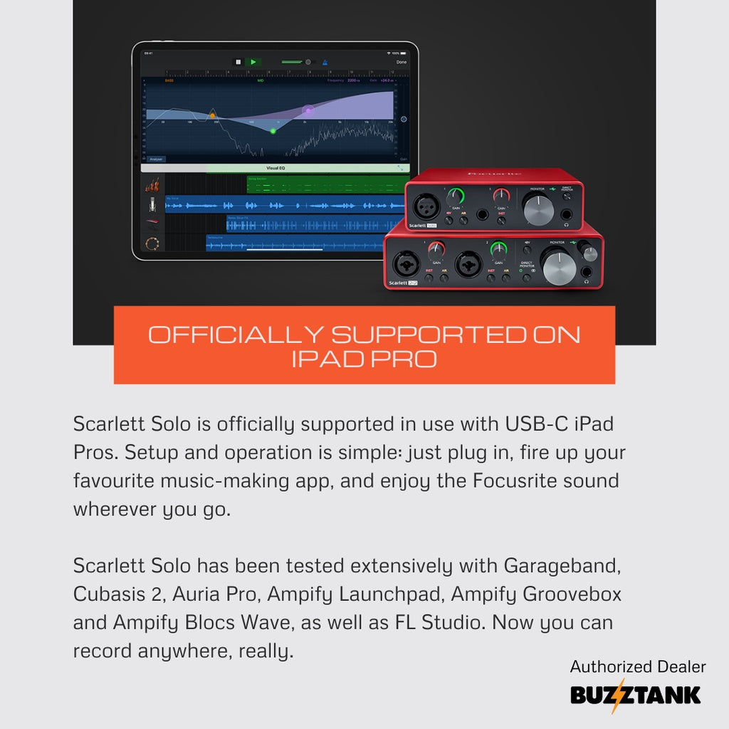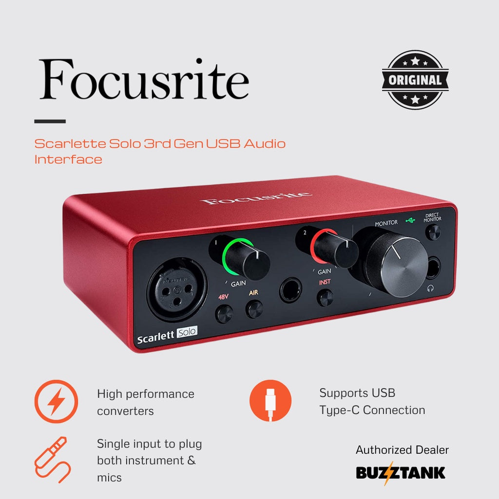 The Focusrite Scarlett Solo 3rd Gen is a compact, reliable USB audio interface designed for beginner and intermediate musicians, podcasters, and home recording enthusiasts. Its high-quality preamps and intuitive setup make it an excellent choice for creating studio-quality recordings anywhere.
