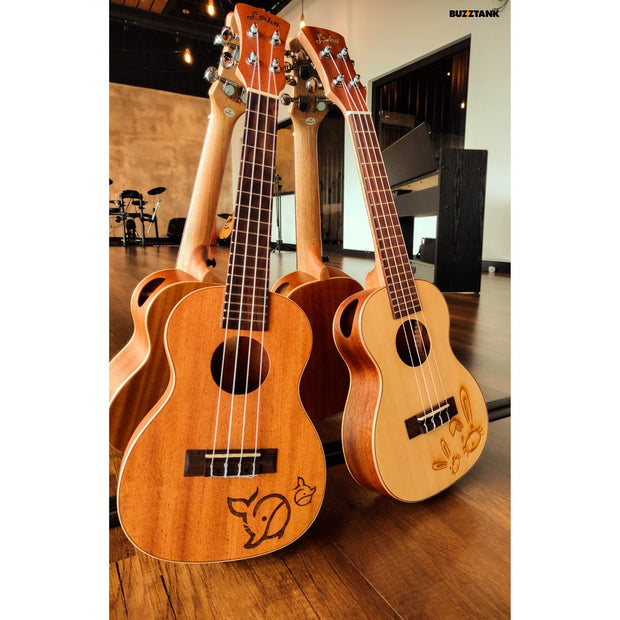 The Loha series blends classic style with charming animal designs, creating an instrument that’s both appealing to young players and acoustically rich. Built from quality mahogany, it delivers warm tones and lively sound without sacrificing quality.