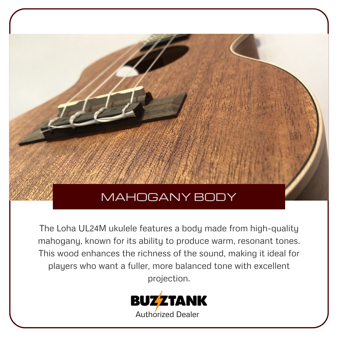 The LOHA UL24M Concert Ukulele offers a combination of quality craftsmanship, balanced sound, and style, making it a great instrument for ukulele enthusiasts and an excellent addition to any musician’s collection.