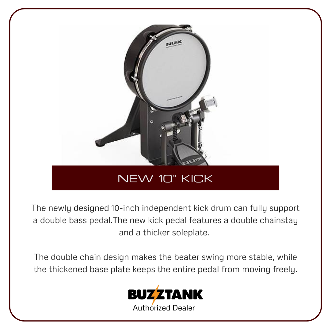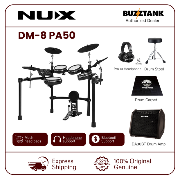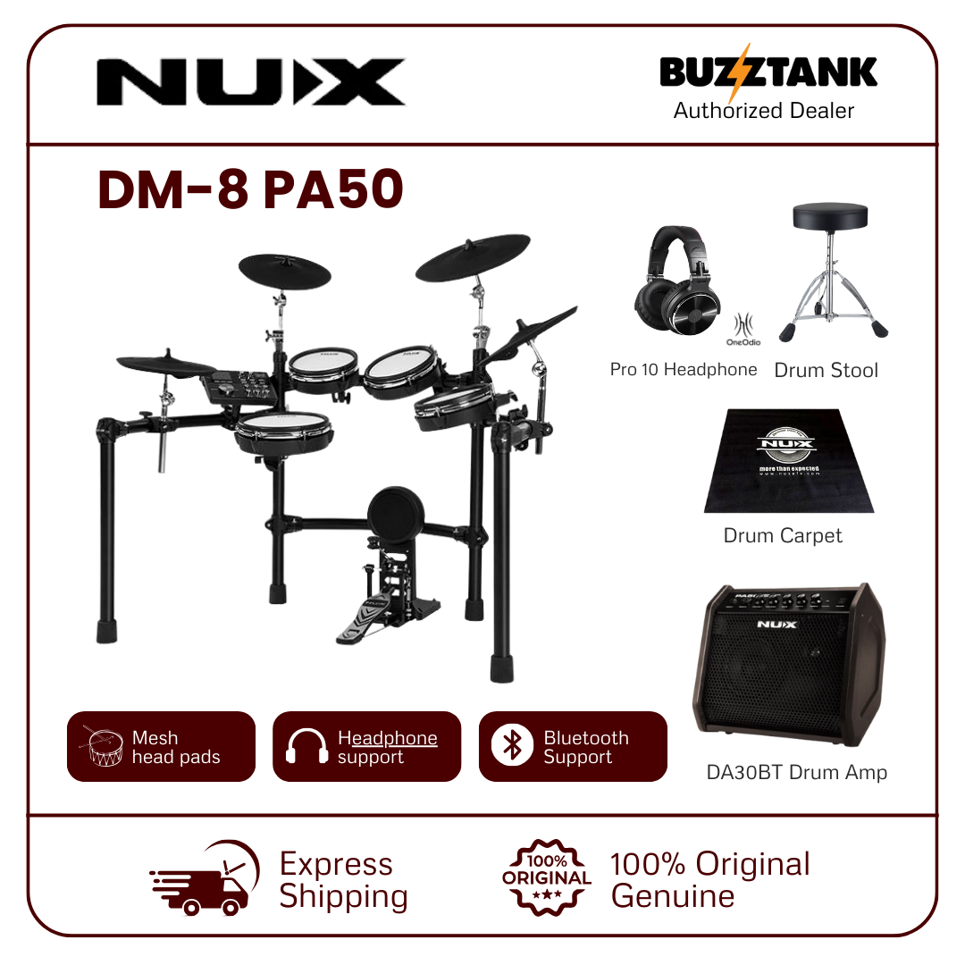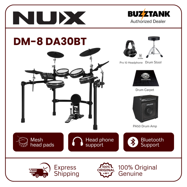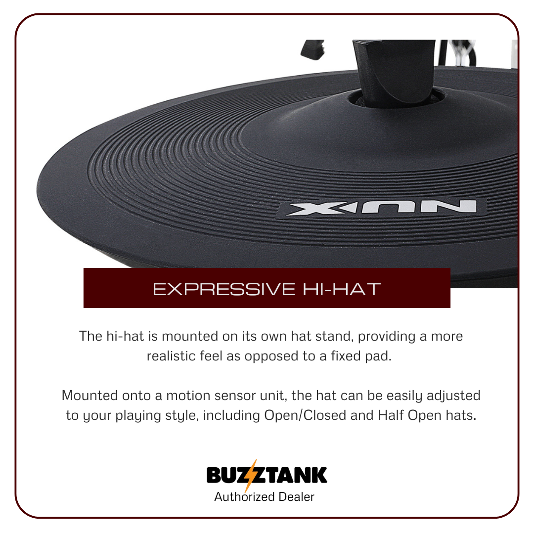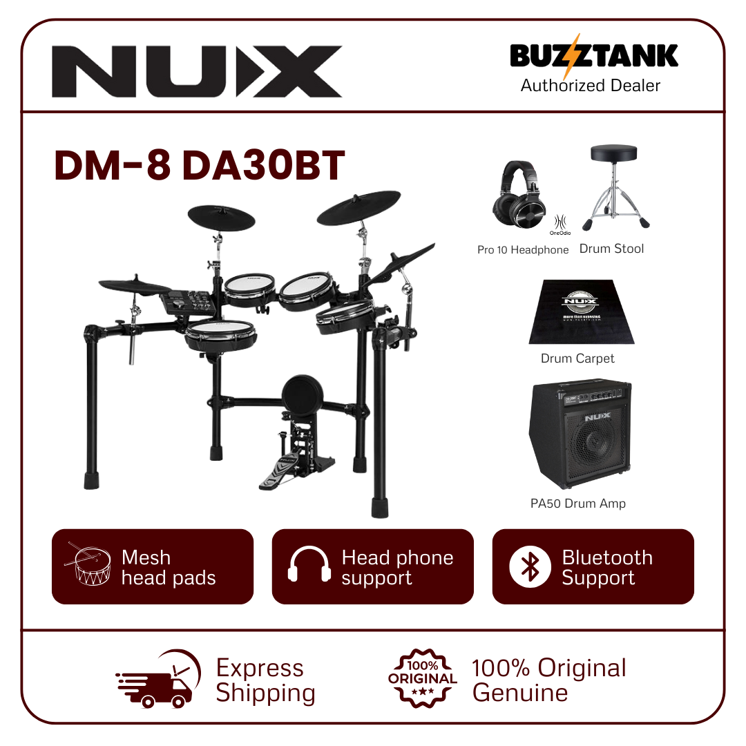 The NUX DM-8 is a premium electronic drum kit that brings together innovative technology and high-quality components, delivering a realistic drumming experience. Whether you're a beginner or a professional, the DM-8's features, including REMO mesh heads, expressive hi-hat, and advanced sound module, make it an ideal choice for any drummer seeking versatility, quality, and customization.