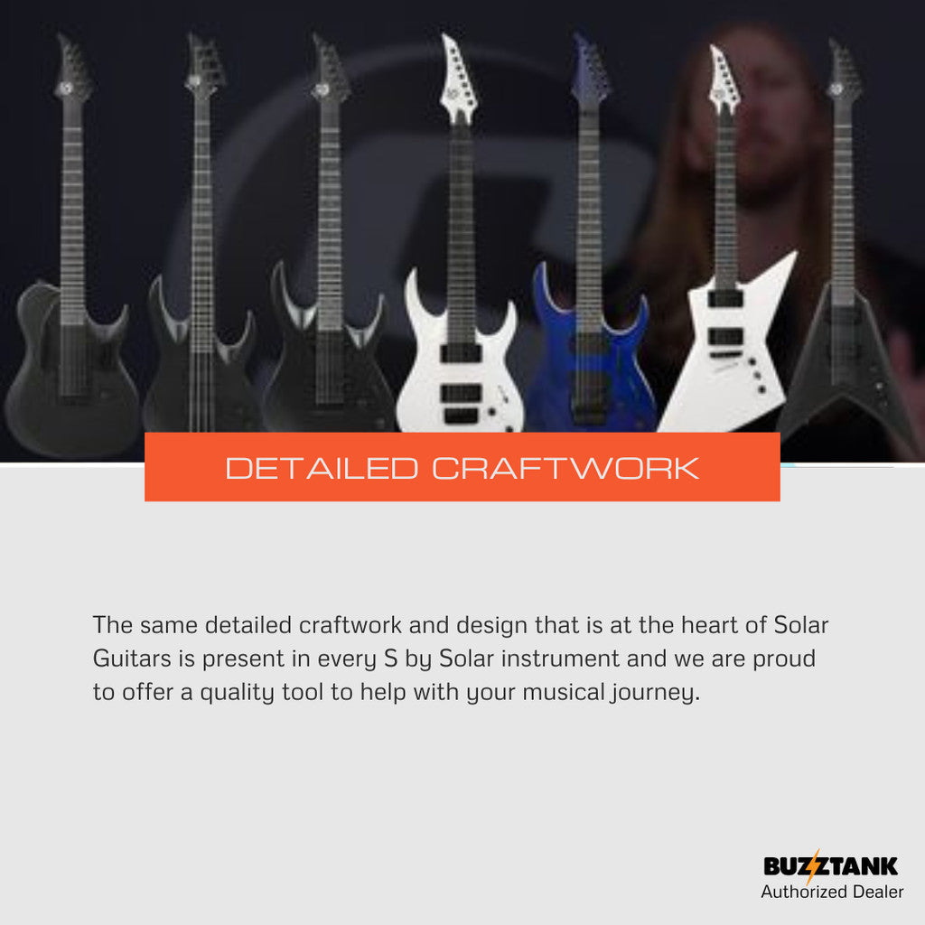 Unleash your inner metalhead with the S by Solar VB4.6 Electric Guitar. Designed with stealthy contours and high-performance features, this guitar combines killer looks with exceptional playability and tone. Whether you're shredding on stage or jamming in the studio, the VB4.6 is built to deliver a powerful metal experience.