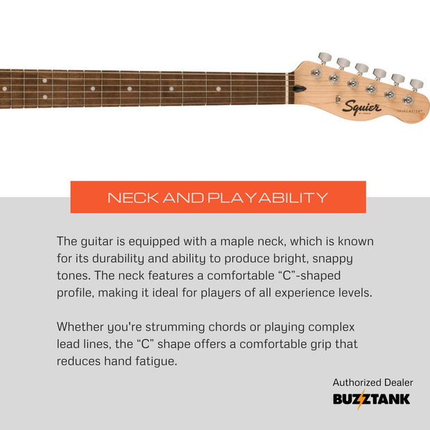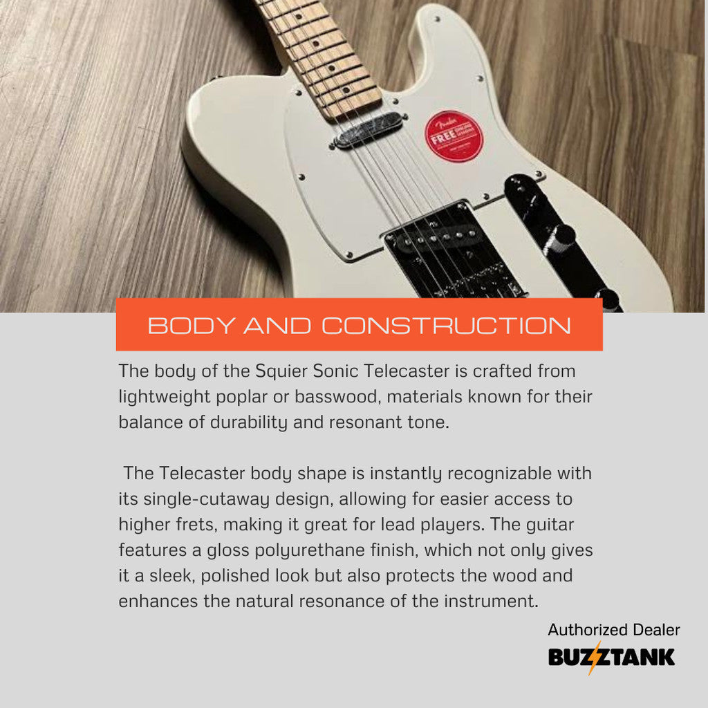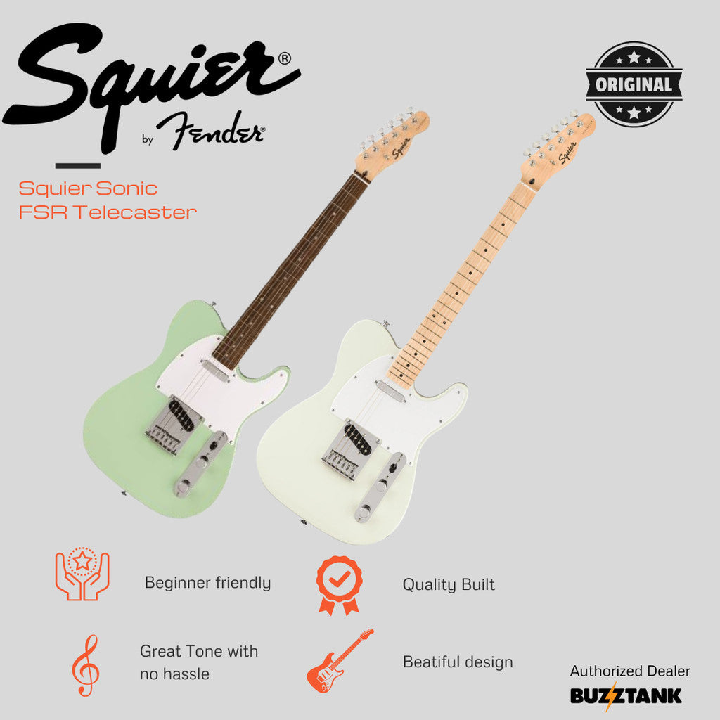 The Squier FSR Sonic Telecaster is a limited-edition electric guitar that blends classic Telecaster tones with modern features and striking aesthetics. As part of the Fender Special Run (FSR) series, this guitar offers exclusive design elements and high-quality performance at an affordable price point.