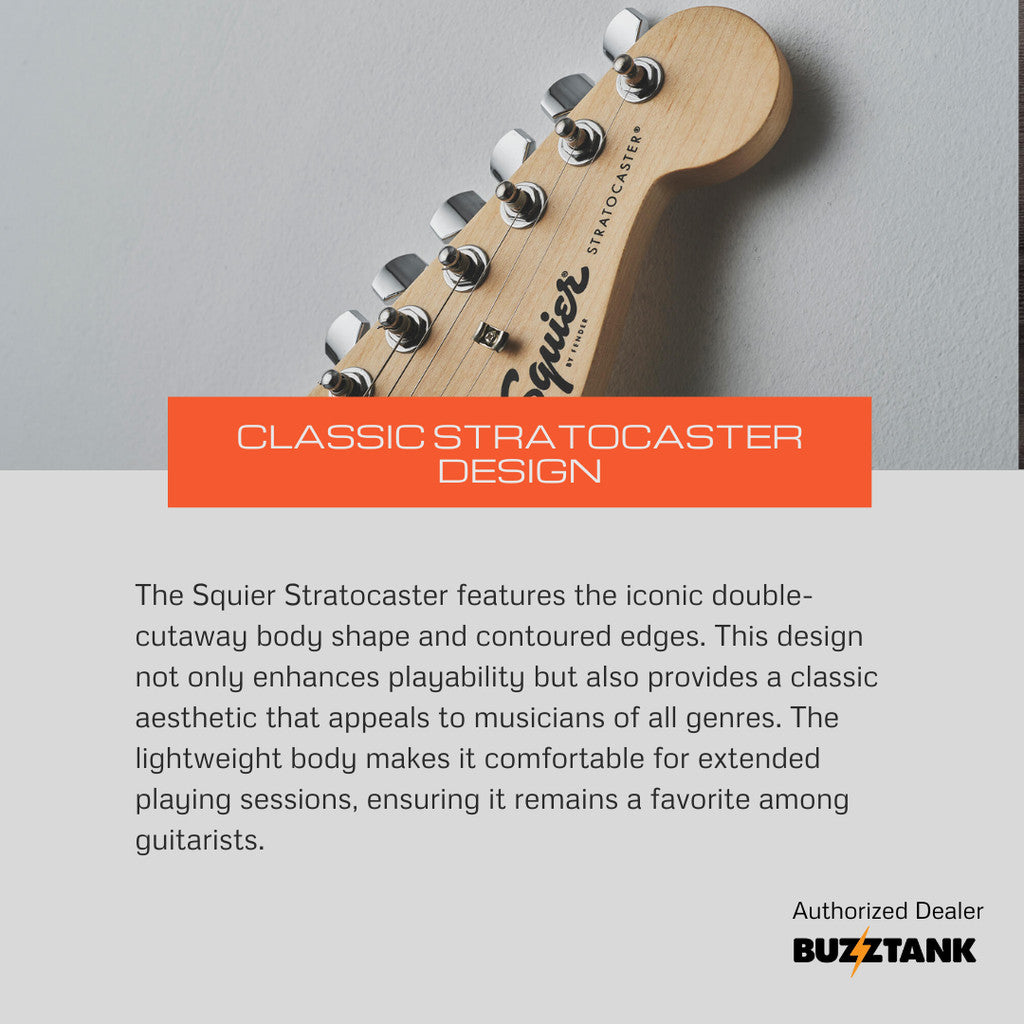 The Squier Sonic Stratocaster Electric Guitar combines classic Stratocaster design with modern features to offer a high-quality, affordable instrument for both beginner and intermediate players. With its iconic Strat body shape and sleek finish, this guitar delivers the timeless Strat sound while remaining comfortable and easy to play.