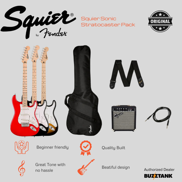The Squier Sonic® Stratocaster® Pack is the perfect all-in-one bundle for beginners ready to start their musical journey! Designed by Fender, this pack includes everything you need to plug in and play right away.