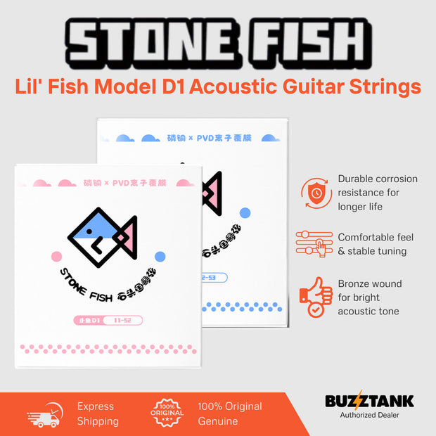 Enhance your acoustic guitar sound with Stonefish Lil’ Fish Model D1 Acoustic Guitar Strings. Designed with premium materials and protective coating, these strings deliver clear tone, smooth playability, and long-lasting performance, making them ideal for daily practice and stage use.